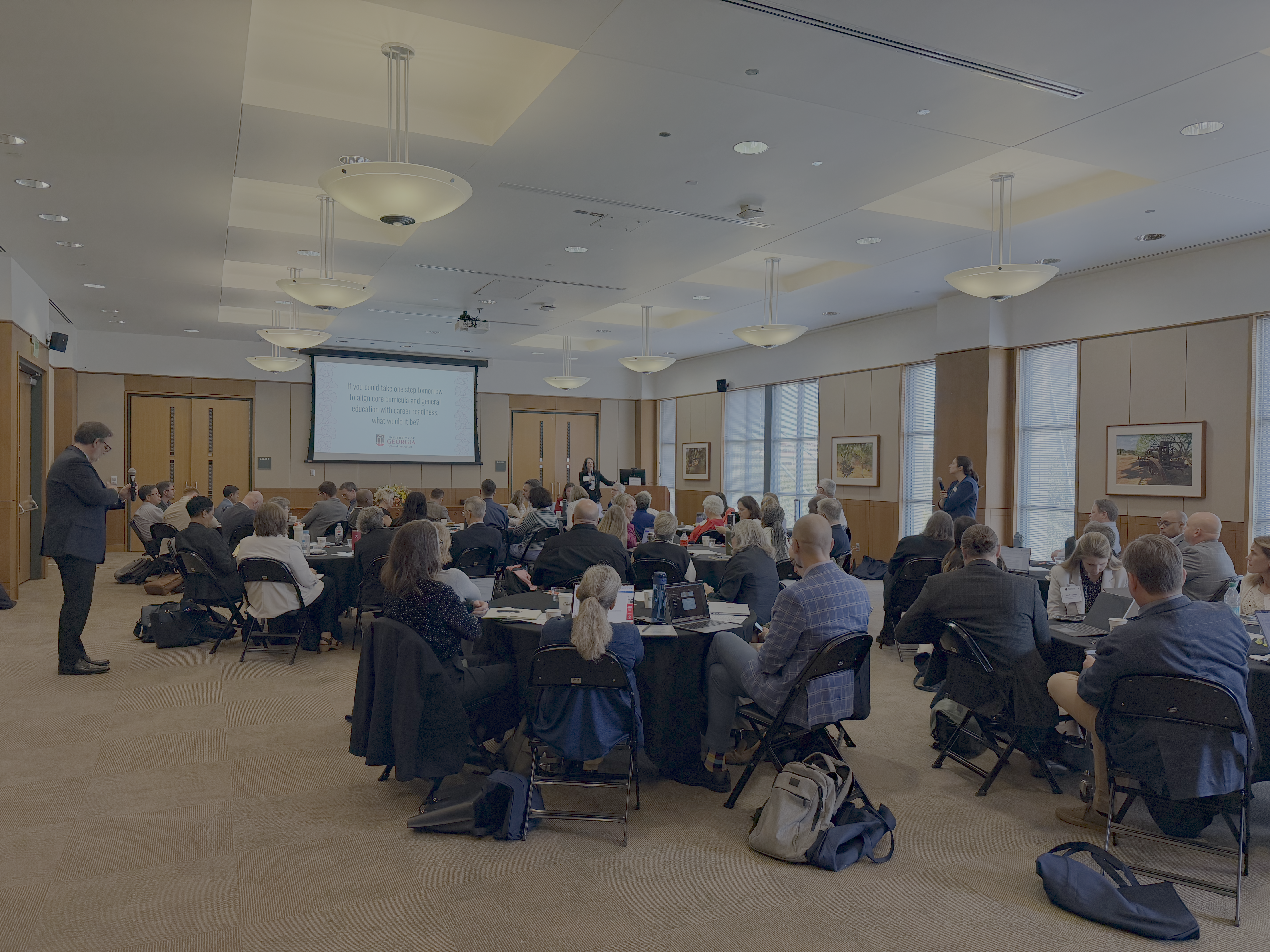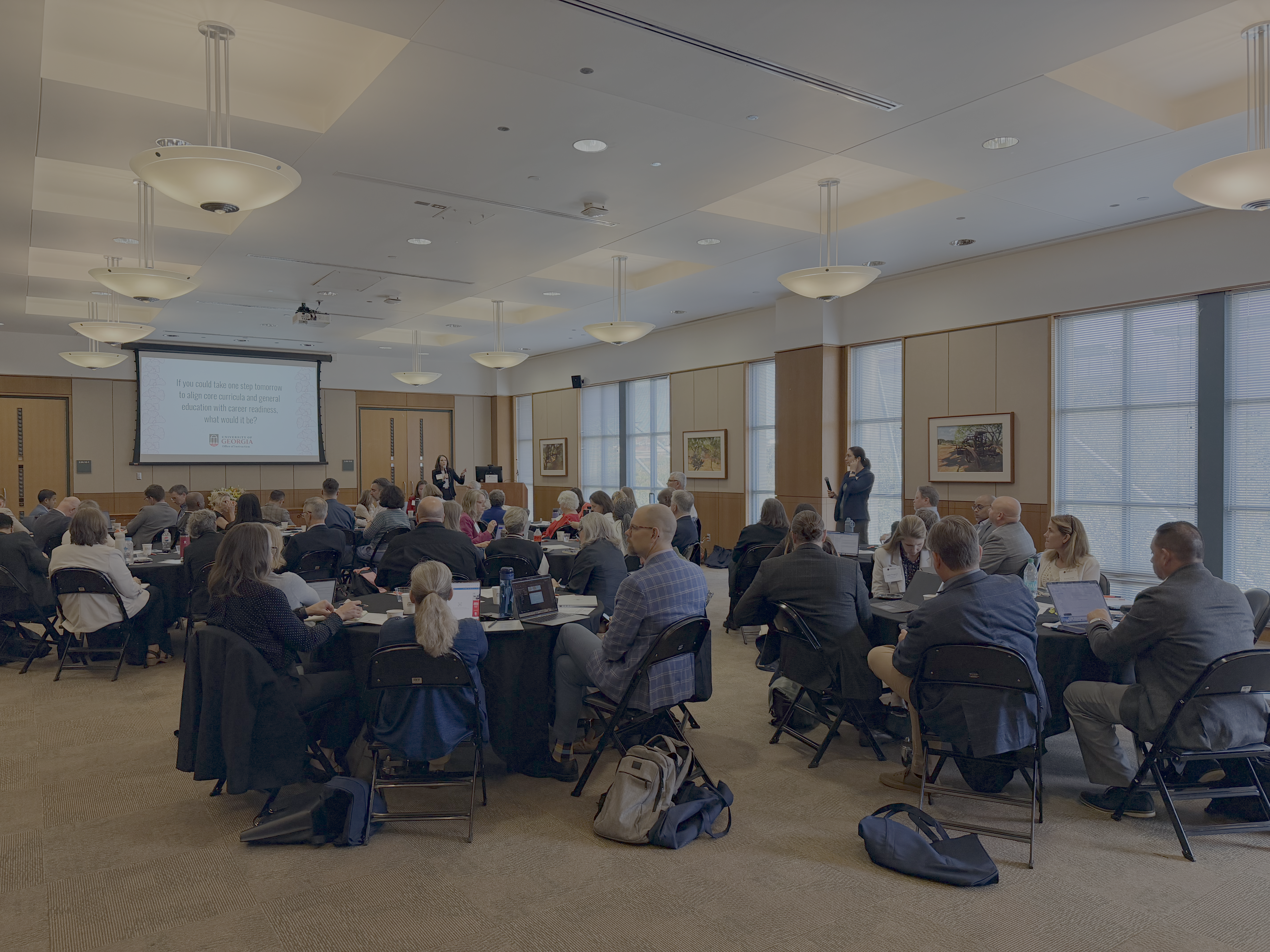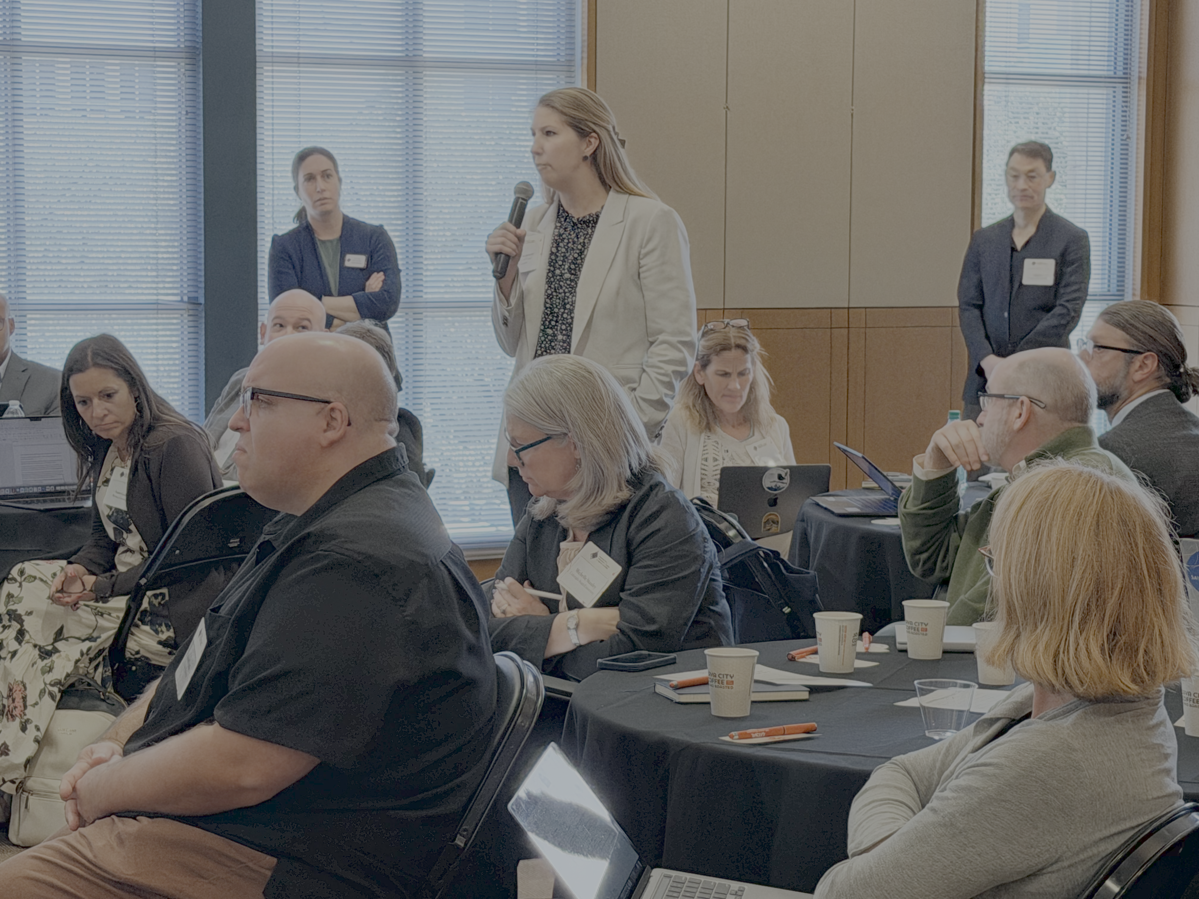 First row (L-to-R): Beth Loizeaux (Boston University), Sen. Kerrey (Nebraska/New School/Minerva), Lynn Okagaki (Delaware), Bethany Usher (George Mason), Naomi Norman (Georgia); second row (L-to-R): Amy Burkert (Carnegie Mellon), Rachel Holloway (Virginia Tech), Doneka Scott (Oregon), Janet Schreck (Johns Hopkins), Bret Smith (NC State), Annette Schwabe (Florida State); third row (L-to-R): Bob McMaster (Minnesota), Mandy Murno-Stasiuk (Kent State), Karen Zunkel (Iowa State), Tanya Uden-Holman (Iowa), Constance Relihan (VCU), Liz Bennett (UERU), Amy Goodburn (Nebraska); row four (L-to-R): Carolyn Thomas (UC Davis), Alan Lamborn (UERU), Nikos Varelas (UIC), Katherine McCormick (UK), Julia Spears (Pittsburgh), Amy Martin (Michigan State), Mike Mullen (NC State), Rob Pangborn (Penn State), Michael Dennin (UC Irvine); row five (L-to-R): Jeff Runner (Rochester), Jessica Waters (American), Heather Mugg (Emory), Melanie Carter (Howard), Ann Austin (Michigan State), David Singel (Montana State), Larry Abraham (Texas), Richard Hughey (UC Santa Cruz); row six (L-to-R): Kevin Pitts (Illinois), Kelly Long (Colorado State), Steve Dandaneau (UERU), Michael Wysession (Washington University, Saint Louis), Jim Spain (Missouri), Ann Marie VanDerZanden (Iowa State), John Su (Marquette), Chris Johnson (Syracuse).